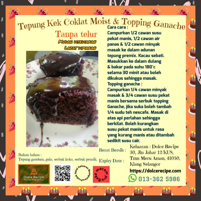 Tepung Premix Kek Coklat Moist Tanpa Telur Topping Ganache Free Coklat Rice Shopee Malaysia
